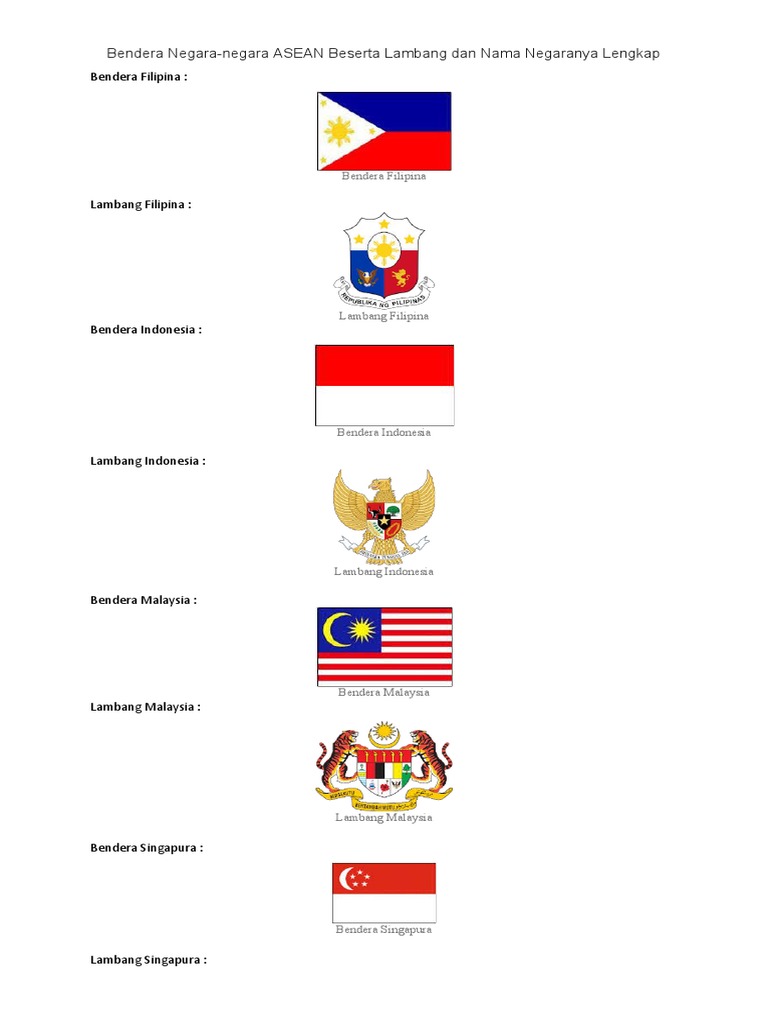 Bendera Negara Negara Asean Beserta Lambang Dan Nama Negaranya Lengkap Pdf